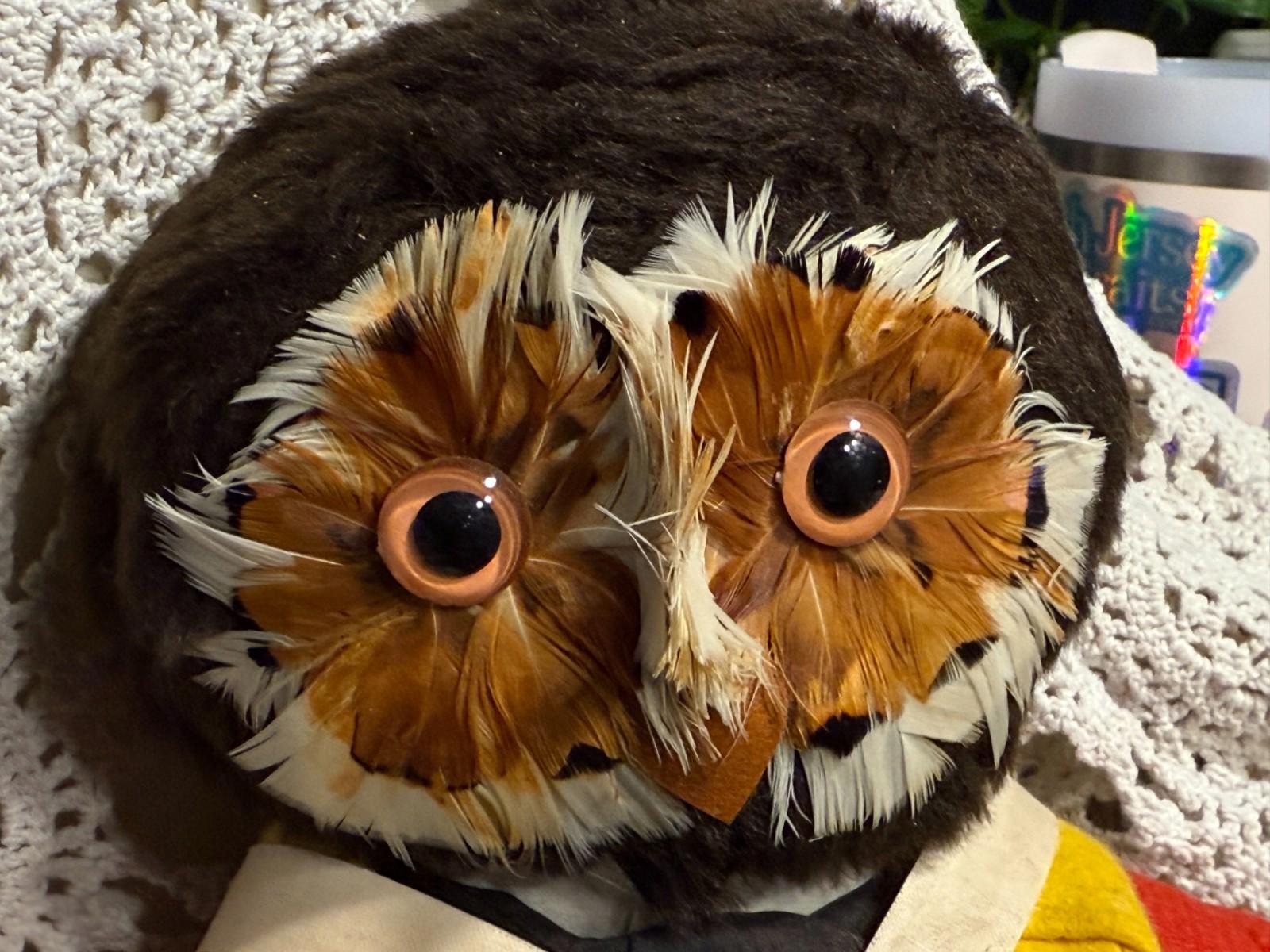 Incredibly rare London Owl Company British Grenadier owl wearing a red coat with yellow lapel. See photos for everything included.
