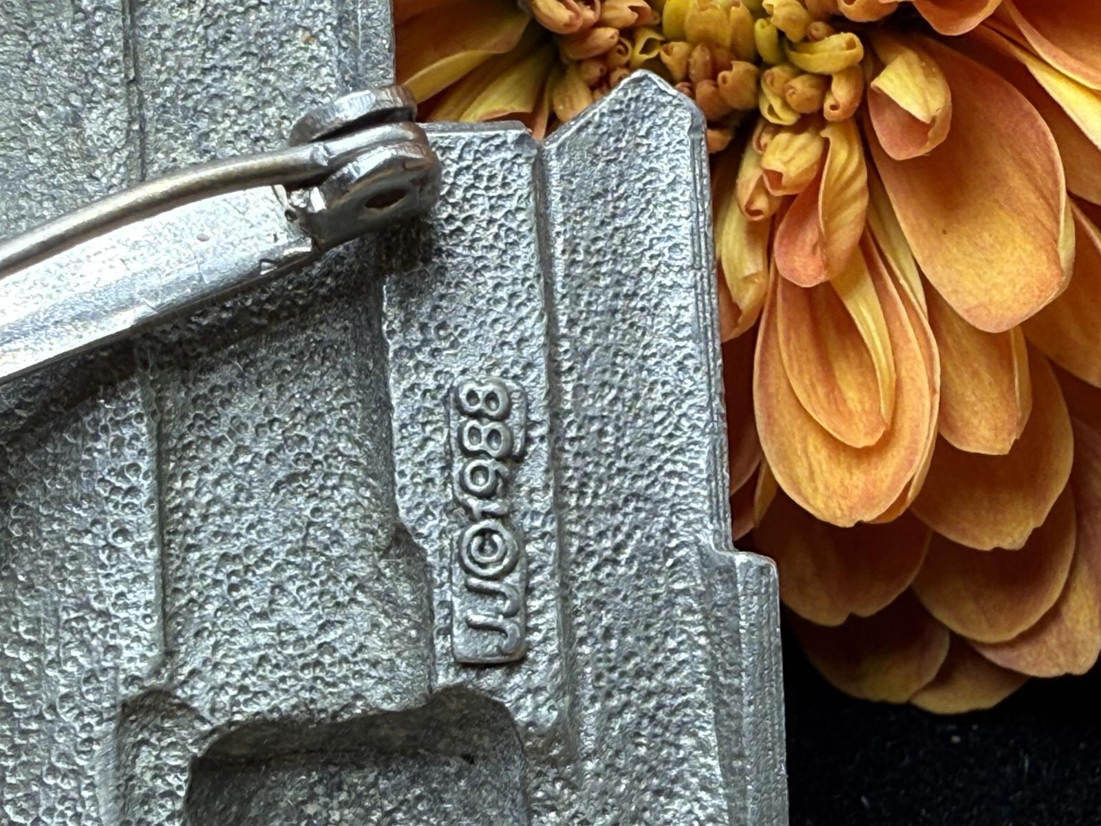 Miniature Pewter New York Skyline Brooch/Pin JJ 1988 Signed