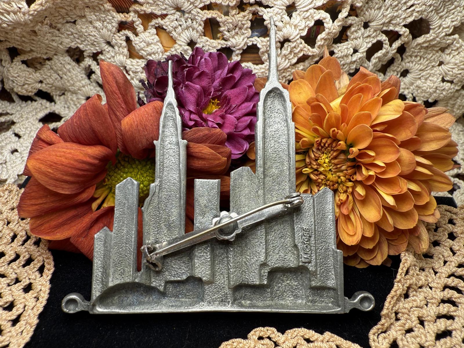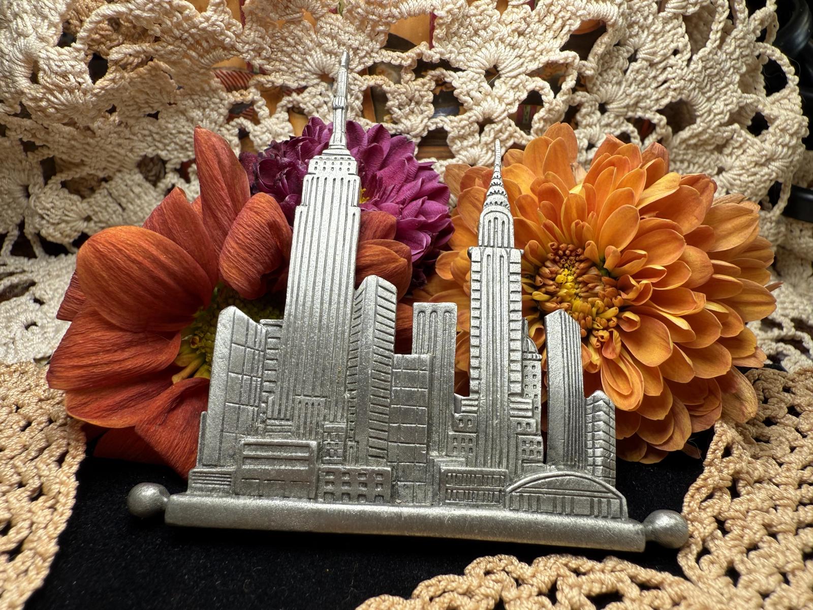 Miniature Pewter New York Skyline Brooch/Pin. The Pewter buildings have a very detail design.