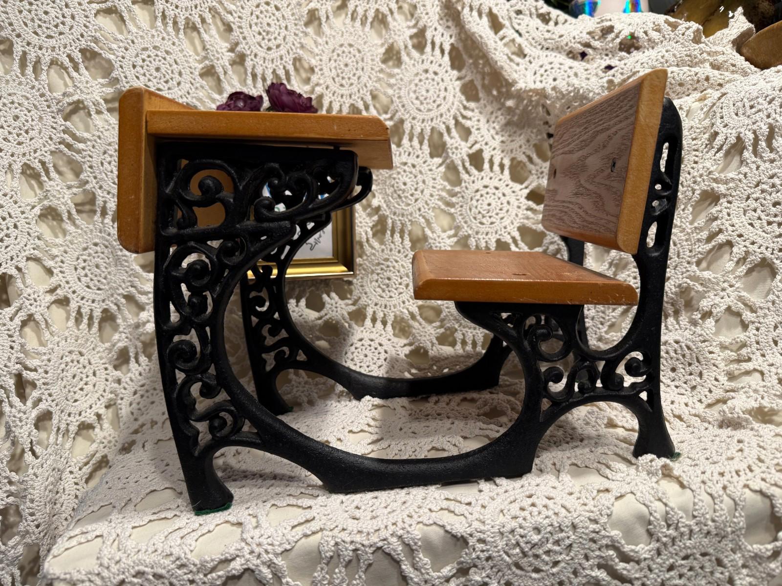 Vintage 1960's Miniature Children Toy Doll Collector Wrought Iron & Wooden Desk