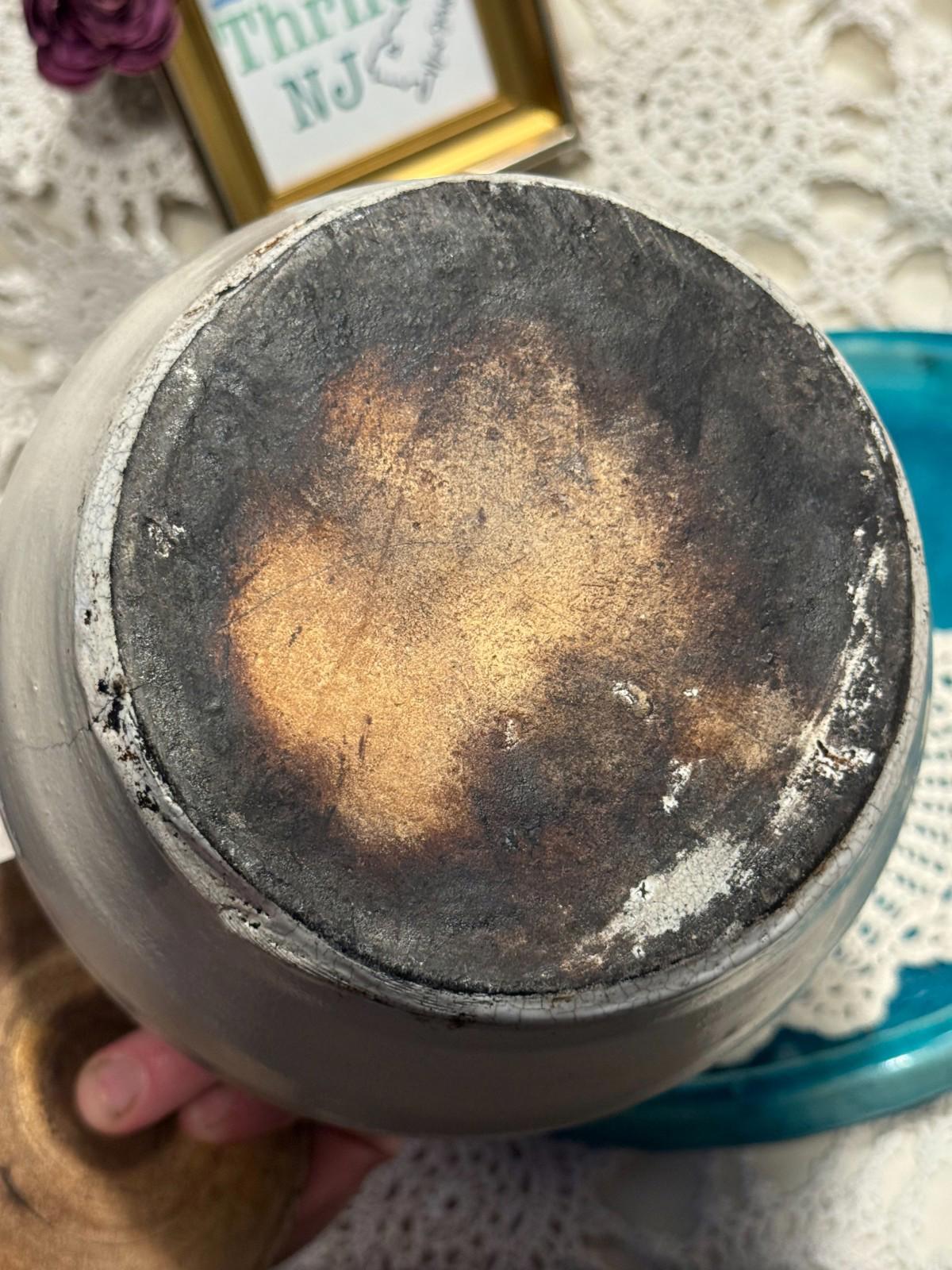 This Vintage Bean Pot is a hand-thrown clay pottery piece with a two-tone finish. Despite having small chips on the lid, it adds a rustic and charming aesthetic to any kitchen or dining room. Made using traditional pottery techniques, this piece showcases the craftsmanship and unique imperfections that come with working with clay. Perfect for those who appreciate vintage decor and the artistry of handmade items.