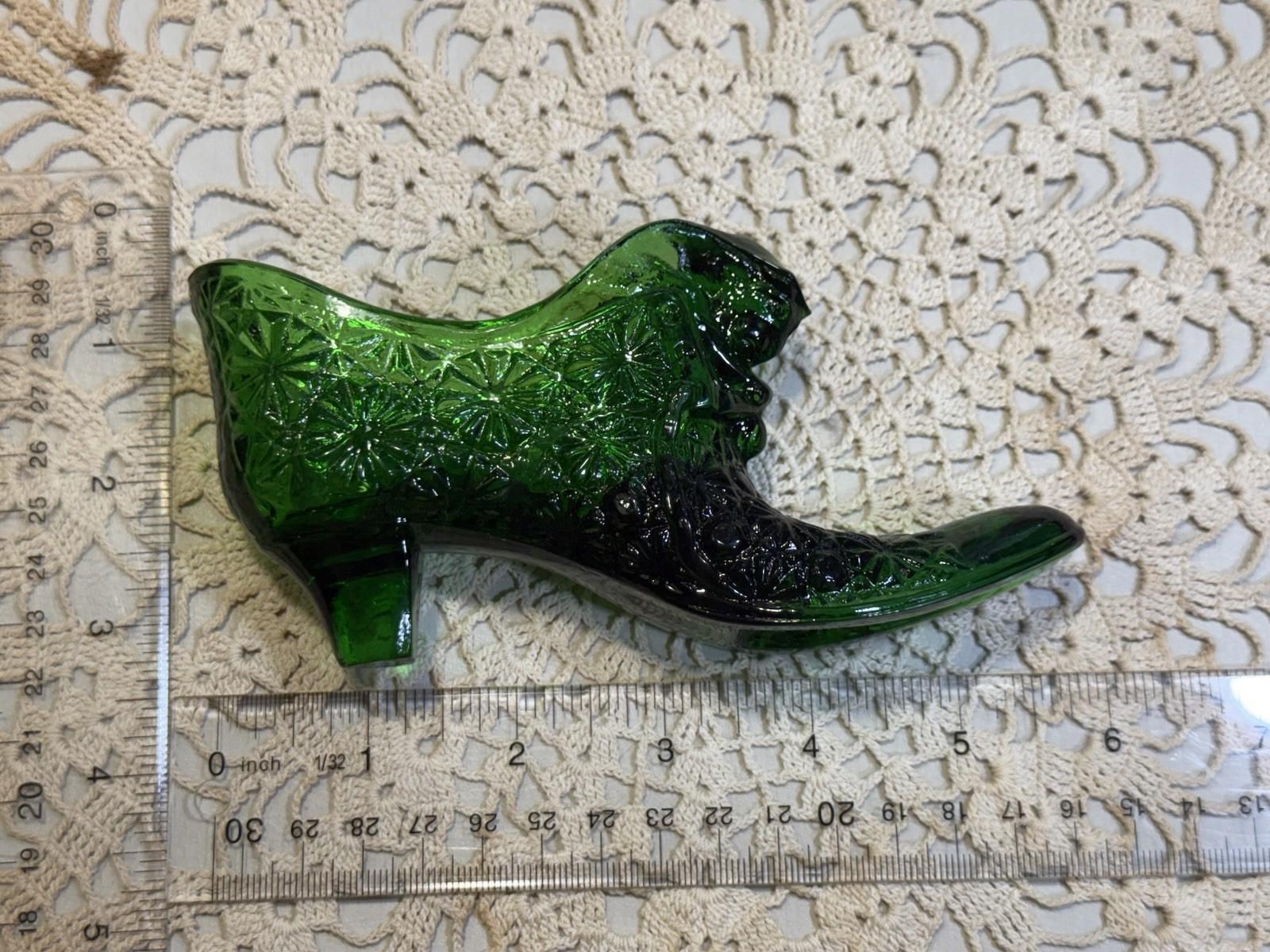 Vintage Cat Fenton Green Glitter Glass Daisy & Buttons Shoe Slipper Boot 6 in