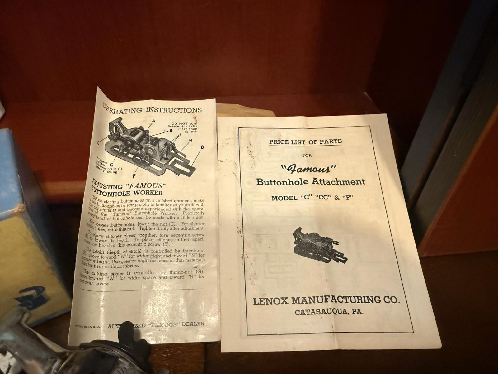 Famous Buttonhole Worker 50th anniversary edition 1940’s sewing machine accessories in box great condition with all accessories & parts