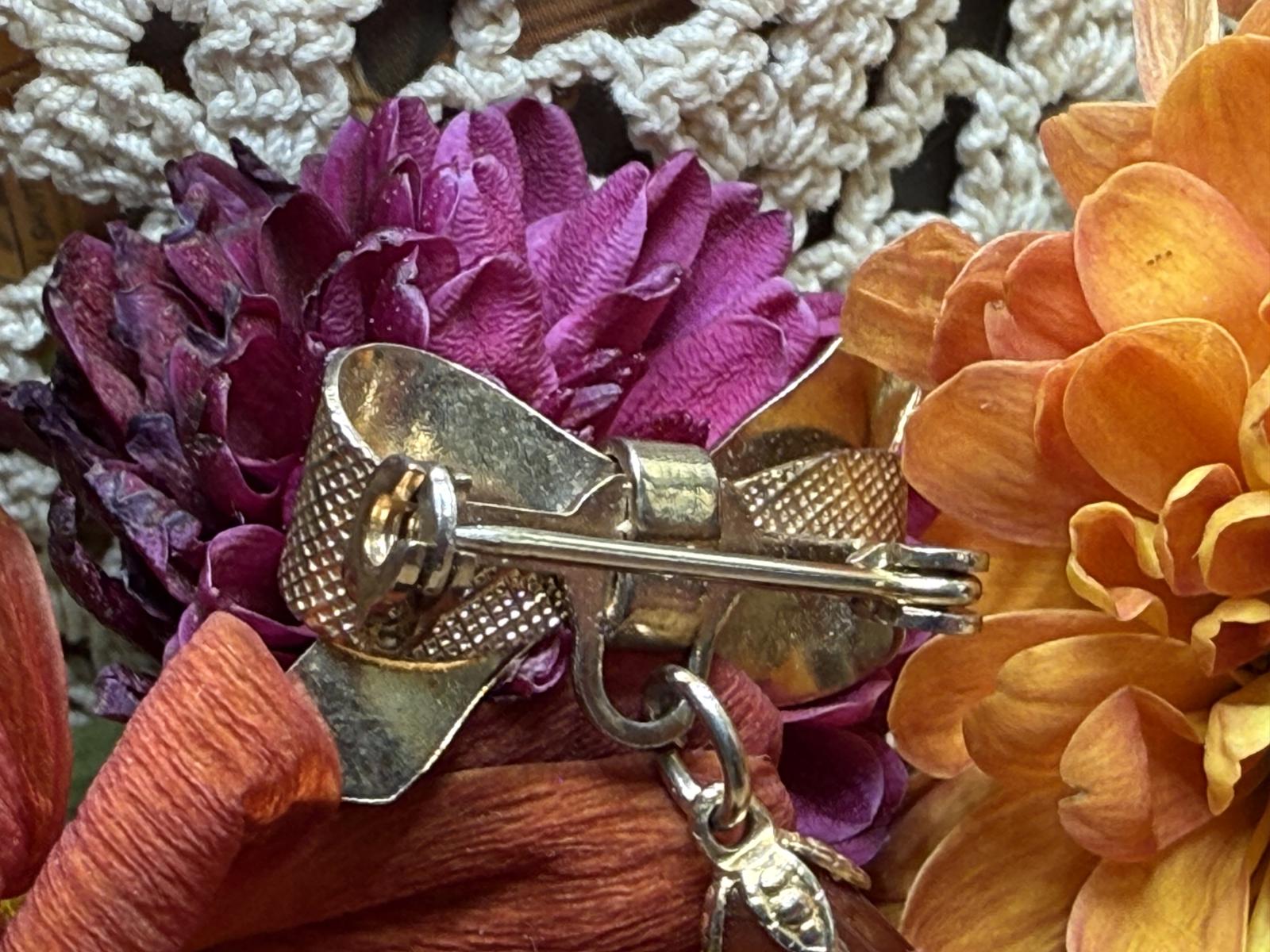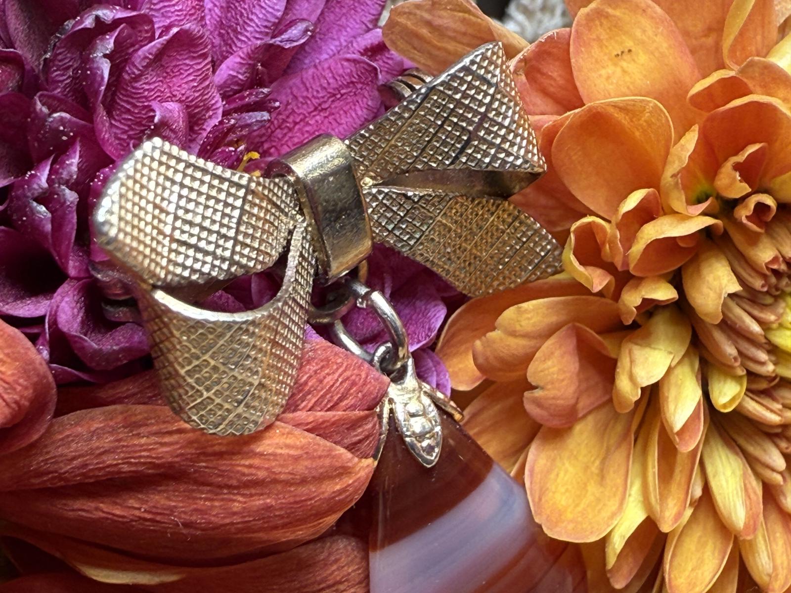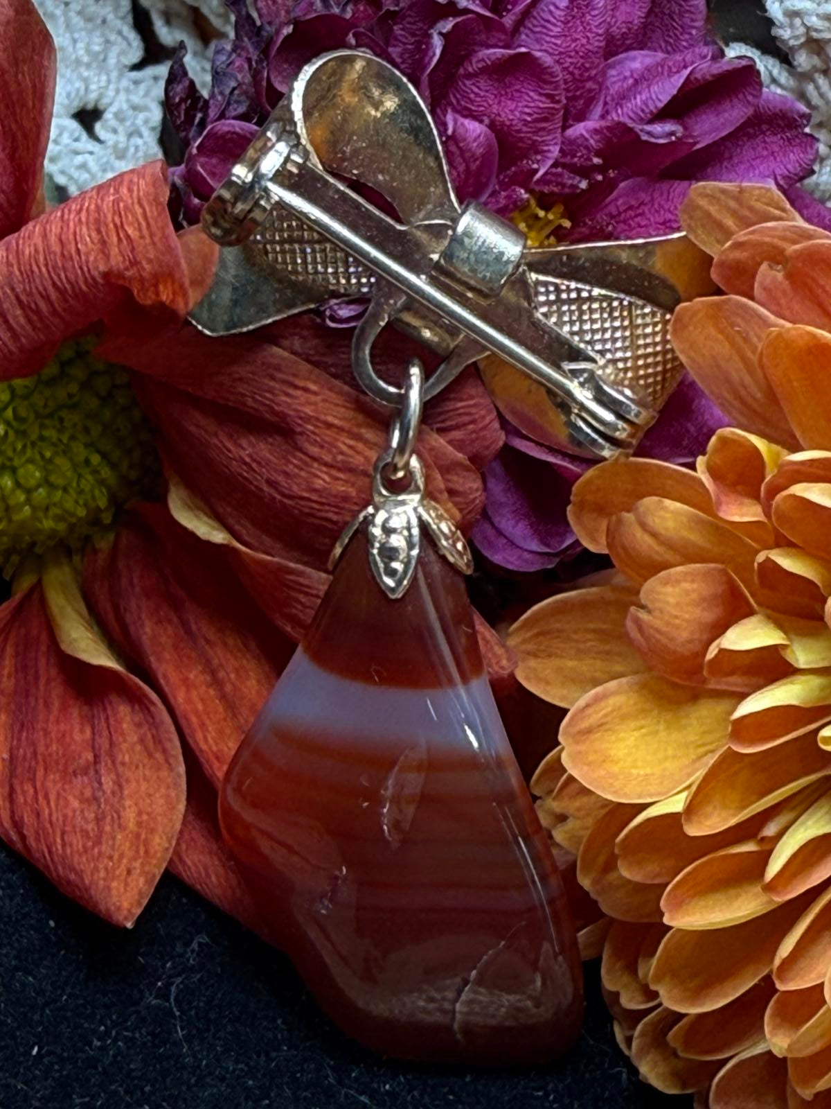 Vintage Gold tone Bow Red Banded Agate Carnelian Brooch Pin