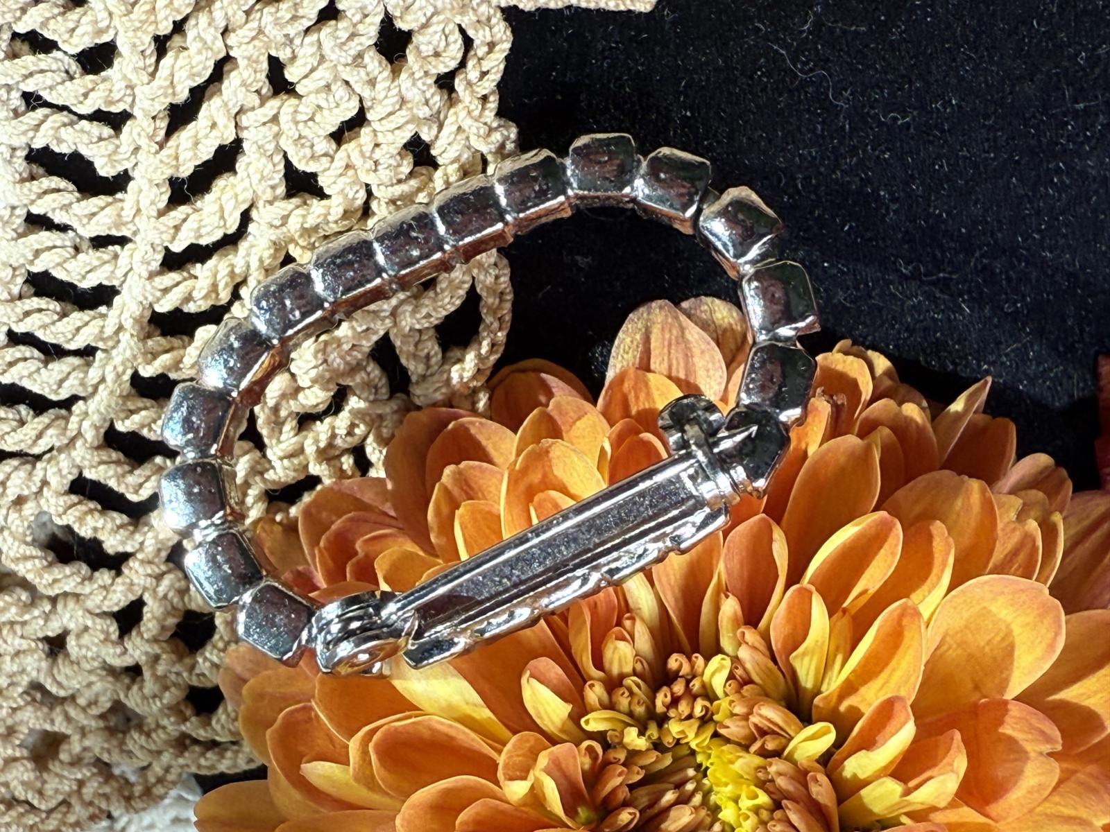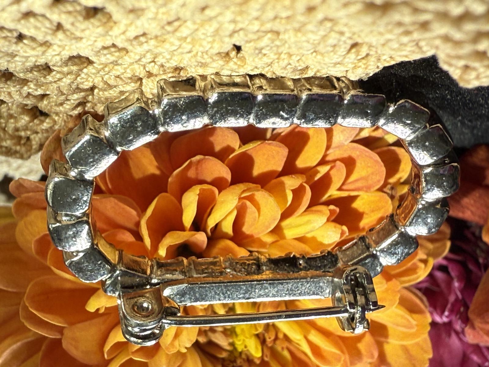 Vintage Rhinestone Oval Brooch Pin silver tone