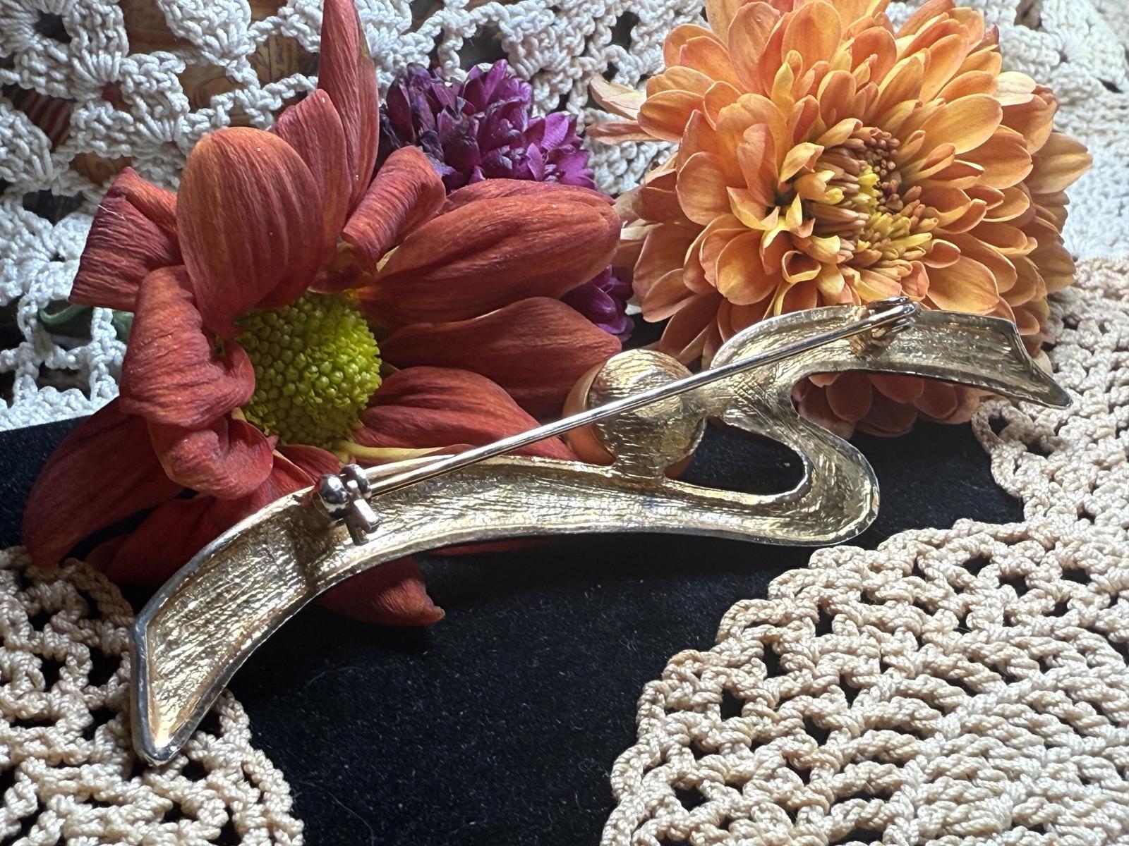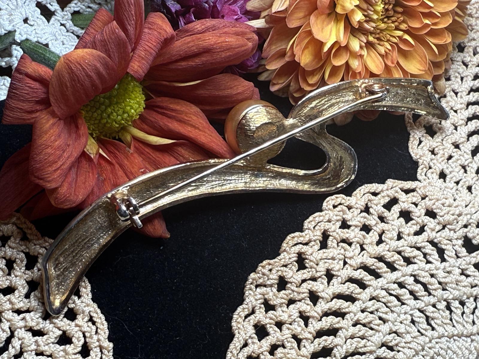 Vintage Swirl Gold Tone Pin Brooch with Faux Pearl Accent