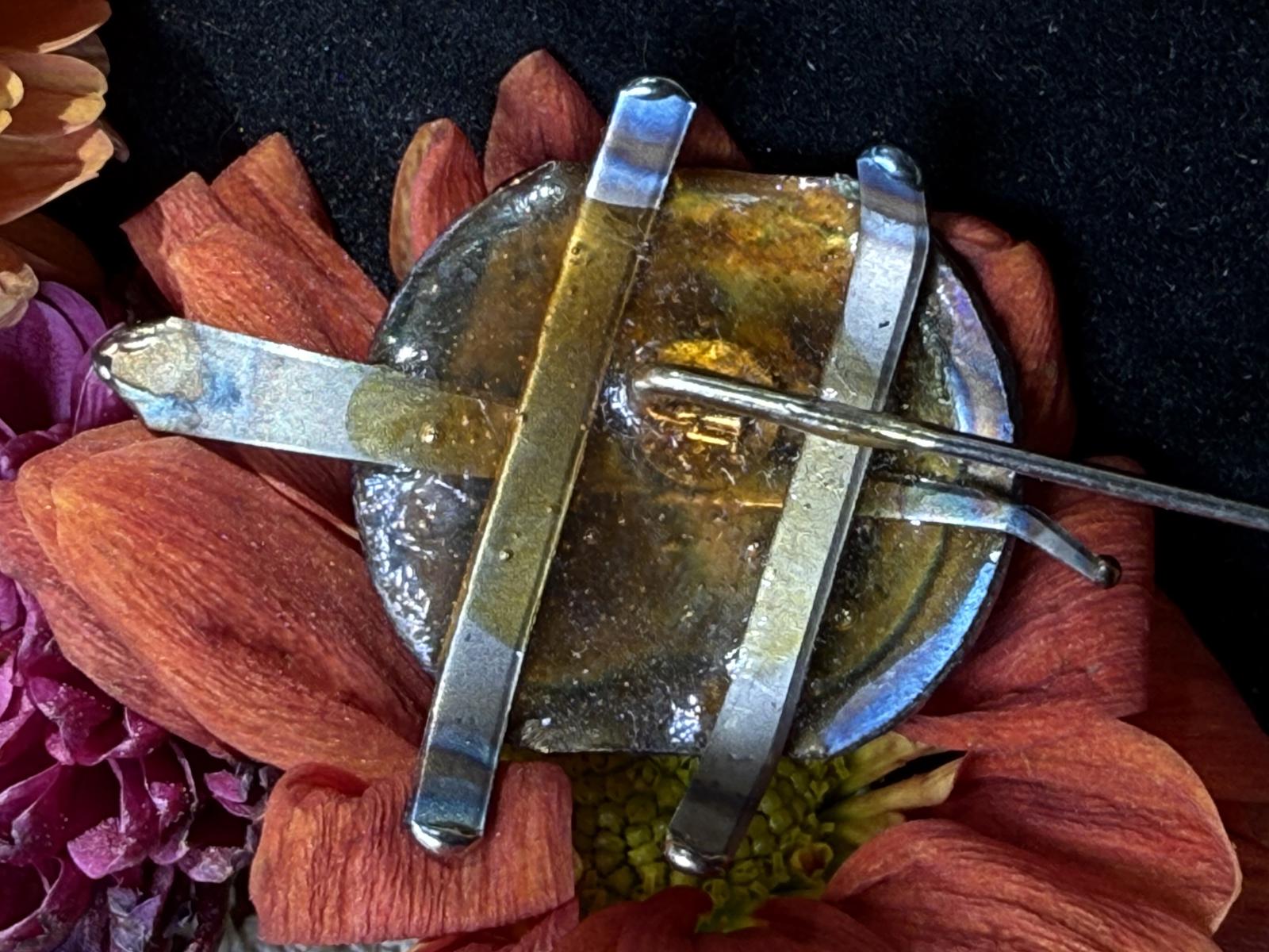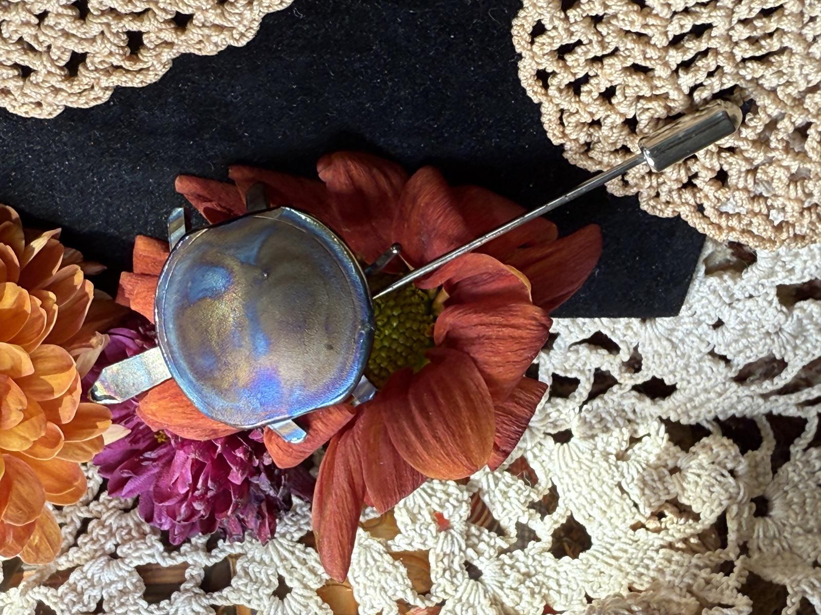 Vintage turtle-shaped brooch pin made of metal with a unique patina finish.