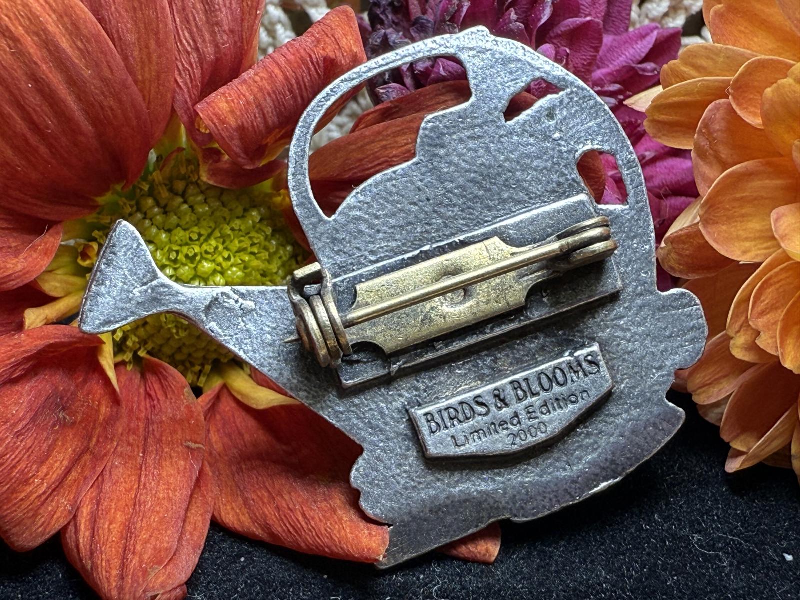 Watering Can Pinback Flowers Spade Birds & Blooms Limited Edition 2000 Pewter signed
